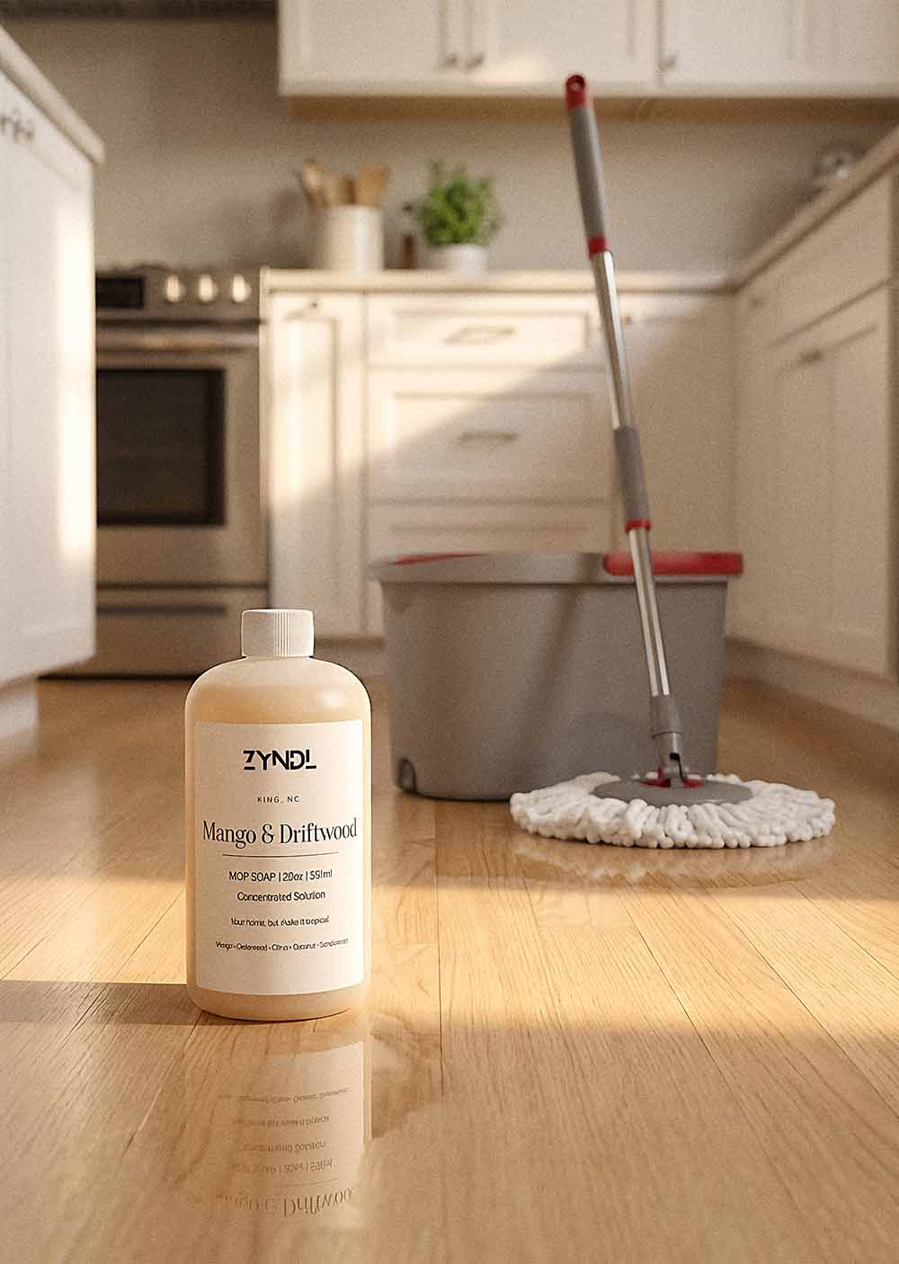 ZYNDL is a small business rooted in King, NC. Every bottle of Mango and Driftwood Mop Soap is made by hand with real care. When you buy from us, you’re supporting a woman-owned, homegrown brand that believes your home should smell as good as it looks. Give your floors the upgrade they deserve.